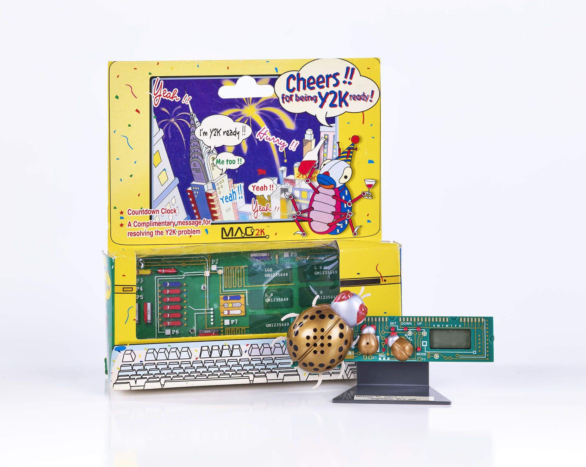 The Y2K bug was the first big anti-climax of the 21st century. The theory was that computers, which only recorded the last two digits of the year, would confuse ‘00’ for 1900, causing chaos in banking, air travel and traffic control. This Y2K bug clock humorously reflects the anxiety leading up to the new millennium. Mercifully, computer programmers fixed the issue in time, and the predicted apocalypse never came. Phew!