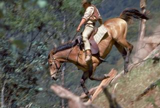 Burlinson had little riding experience and was taught by Charlie Lovick for the film. Despite occasional rumours to the contrary, Burlinson performed all his own horseriding in the film – including this famous ride down the mountain.