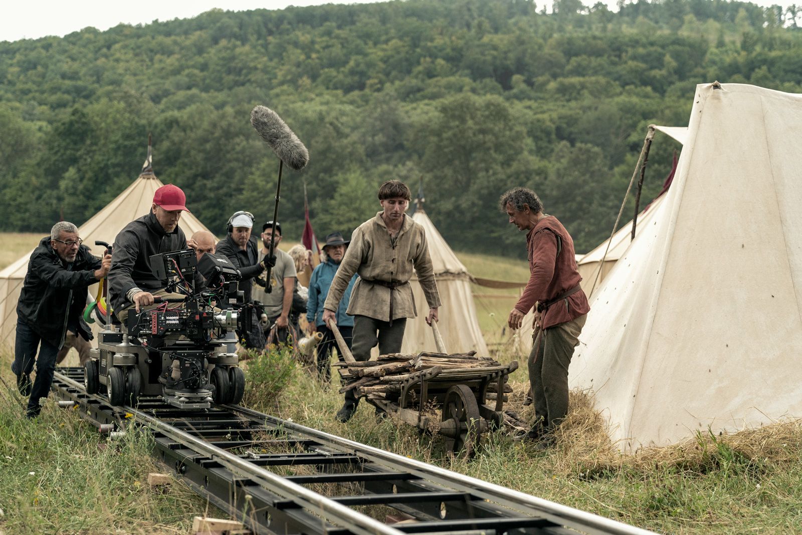 The clip above features the moments building up to the film's third-act battle sequence, where young Henry clashes with the Dauphin of France (Robert Pattinson) on the fields of Agincourt. The camerawork moves between the panoramic and the intimate. Expansive wide shots showcase the grand scale of the armies and the features of the surrounding topography. A tracking shot taken in natural light captures the intense moments where Henry walks among his loyal followers in the flanking forest, showing him as a man of the people – an action king.