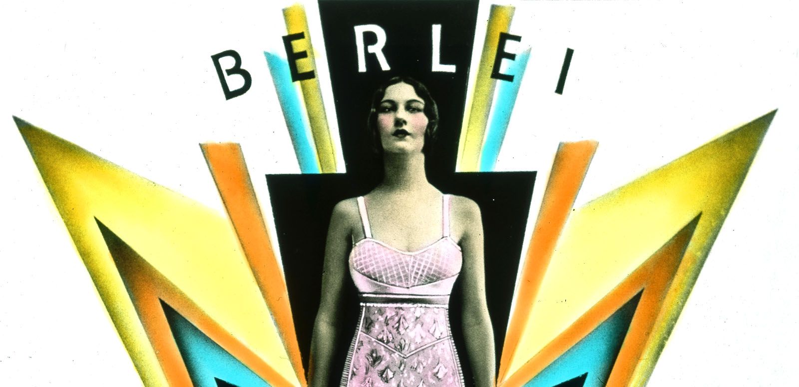The collection also showcases beautiful hand-coloured glass slides used for training Berlei corsetieres, the specialists who fitted corsets.