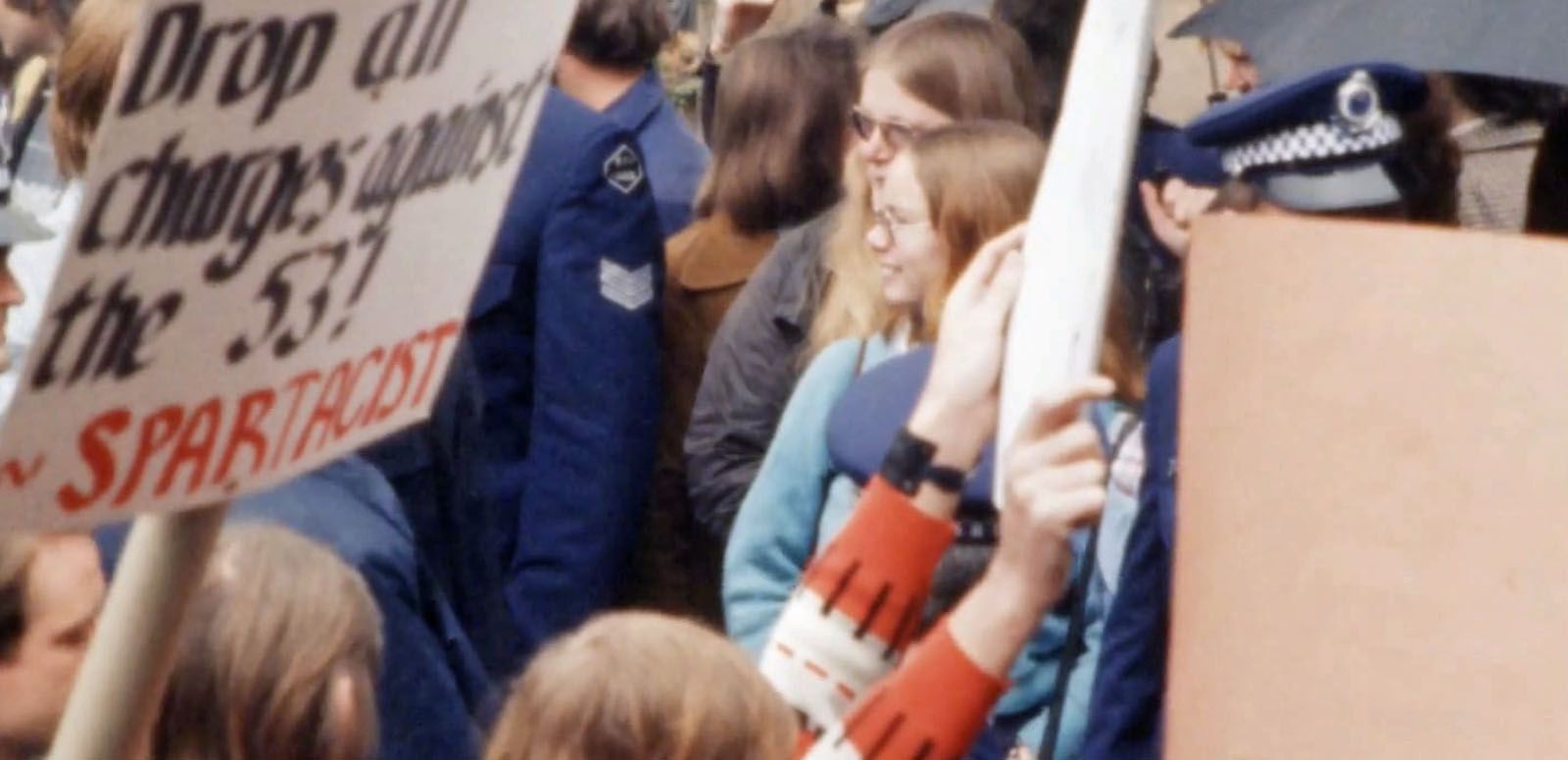Main image: Screenshot from Eyewitness News report about protests following police arrests at the first Mardi Gras in Sydney, June 1978. Courtesy: Ten Network. NFSA title: 613914