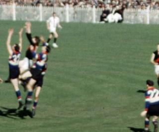 John Coleman and Footscray’s Herb Henderson contest a mark.Frame capture from NFSA title:1223446