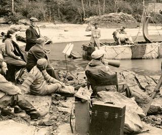 Main image: Production shot of cast and crew of For the Term of His Natural Life (1927) on a rocky beach. NFSA title: 347553
