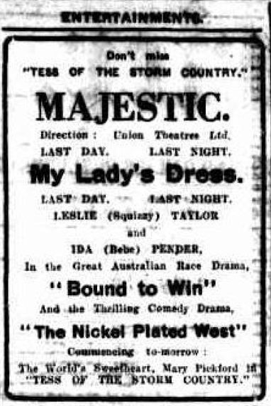 In the early 1920s, Melbourne society was a seething hotbed of entrepreneurial con artists and ambitious personalities, self-made gangsters and amateur film directors. Near the peak of Squizzy Taylor’s notoriety, one such producer-director by the name of Eric Harrison met with Taylor and his then girlfriend Ida ‘Babe’ Pender. He convinced the pair to star in a ‘sporting comedy drama’. At a reported 4500 feet, the final film would have screened at just under an hour, with many of its scenes set at Caulfield and Moonee Valley, in inner-city Melbourne.