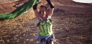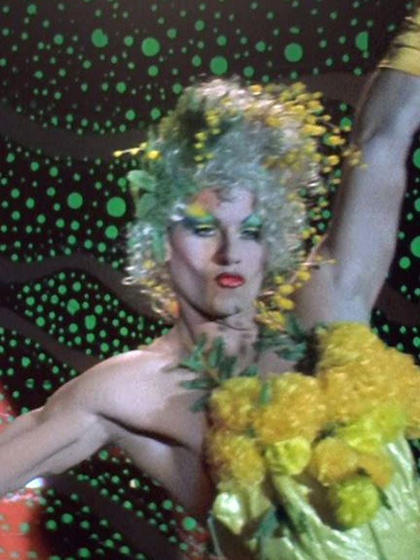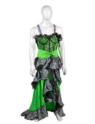 This costume, photographed as part of the NFSA collection, is a lime-green confectionary triumph, replete with a sequined body suit, silver iridescent frills and a lycra flamenco skirt.