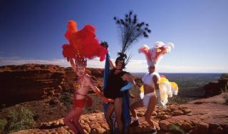 Tick/Mitzi (Hugo Weaving) attempts to become more ‘masculine’ in the eyes of his son Benji (Mark Holmes), but the boy reassures his father that he accepts him as he is. Mitzi then joins Felicia (Guy Pearce) and Bernadette (Terence Stamp) in full drag for the climb to the top of King’s Canyon (Watarrka), thus fulfilling Felicia’s ambition.