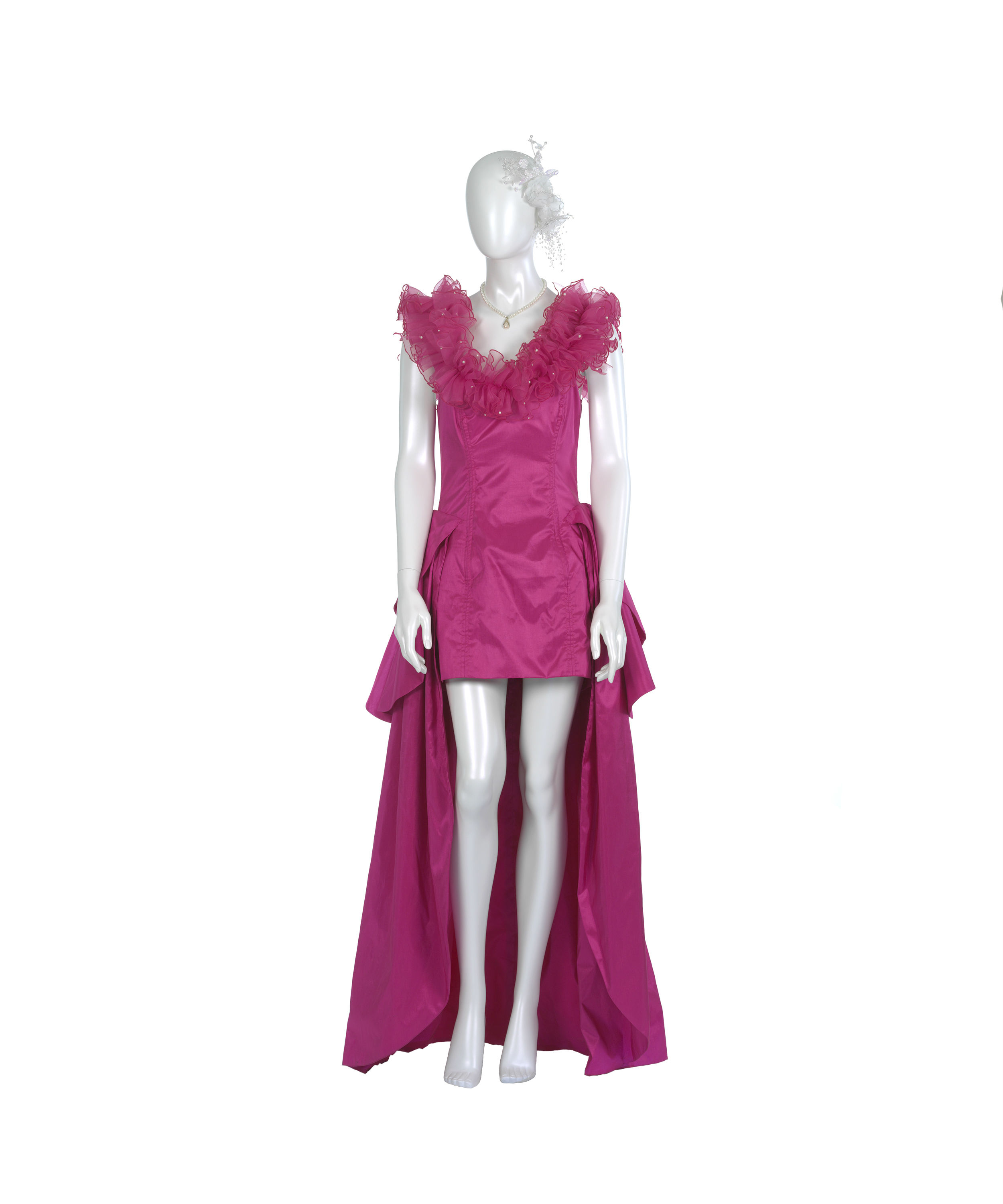 The three peach-coloured bridesmaids’ ensembles were worn by Cheryl (Rosalind Hammond), Tania (Sophie Lee) and Janine (Belinda Jarrett) at Muriel’s wedding.